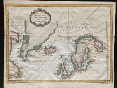This 1758 sea chart shows coasts of the British Isles, Iceland, Greenland and most directly Scandinavia. It was published by Jacques Nicolas Bellin (1703-1772) and featured in Antoine Francois Prevost's " L' Histoire Generale des Voyages". The map covers coastlines of Finland, Scandinavia, Iceland, Greenland, The British Isles, and Canada from Baffin Island south to the ILe d'Anticosti which lies in the Gulf of Saint Lawrence. In addition to his six Atlases published from 1753 to 1771, Bellin was appointed chief cartographer to the French Navy in 1721 at the age of 18 and twenty years later he became engineer to the French Hydrographical office as well as Official Hydrographer to the French King.